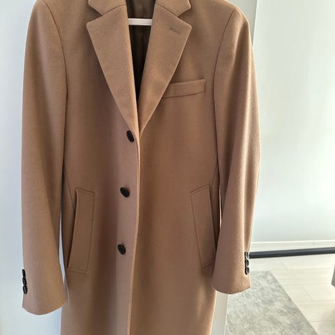 Erittäin hyväkuntoinen ja tyylikäs villakangastakki, pidetty pari kertaa. Materiaali: 55% villa, 32% polyesteri, 8% kashmir, 5% polyamidi. Pituus: hartia-helma n. 96cm.