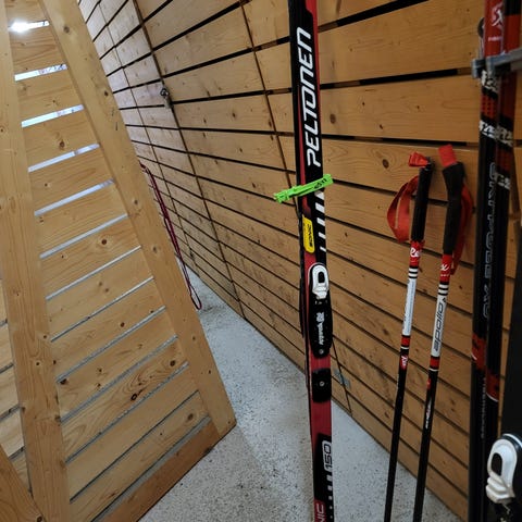 Sukset ja sauvat ovat olleet vähällä käytöllä. Hiihtokilometrejä alle 100.