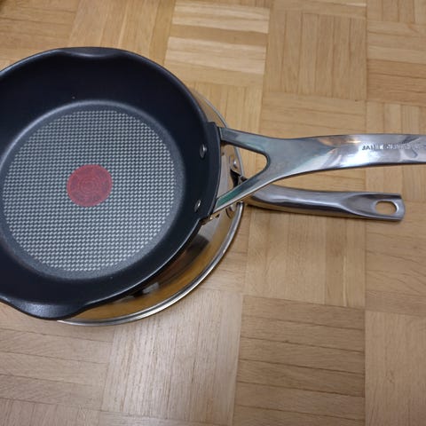 Myydään Jamie Oliver Tefal paistinpannu halkaisijaltaan 24 cm. Naarmut ja muut virheet näkyvät kuvissa.