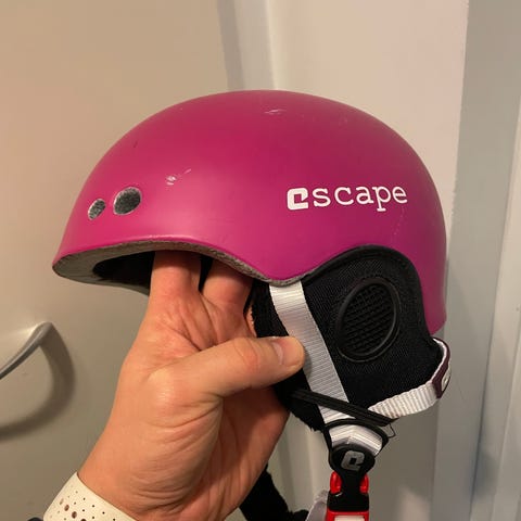 Hyväkuntoinen lasten laskettelukypärä.