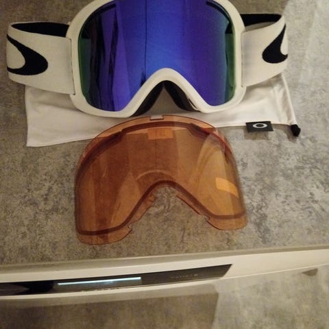 Myydään Oakleyn Line Miner L lasit Iced Iridium ”Suomi-linssillä”. Musta freimi sinisellä logolla.