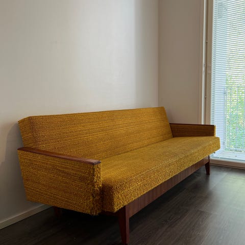 Alaosan kangas pahasti kissojen repimä. Ollut viimeisen käytössäoloaikansa lähinnä kissojen makuualustana.