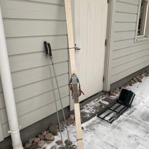Todella hyväkuntoinen metsä-/ eräsuksi paketti. Suksien pituus 195cm, leveys 10 cm, sauvat 140 cm.