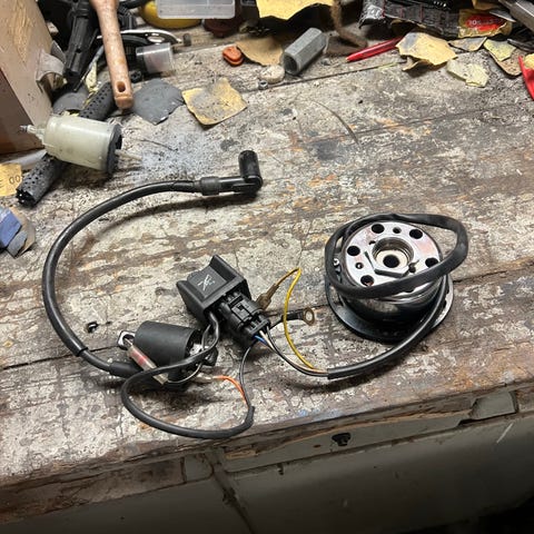 Vähällä käytöllä ja täysin toimivat hpi valolliset kisäsähköt. Sopii derbi sekä am6 mopoihin.
