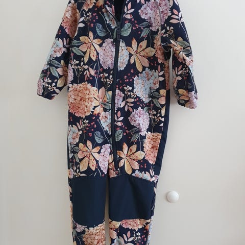 Yhden lapsen käytöstä Name Itin softshell- haalari, koko 98. Peppu ja polvet siistit, jalkalenkit puuttuu. Ainoa moite pari tahraa edessä, näkyy kuvassa. Ei ole yritetty poistaa.