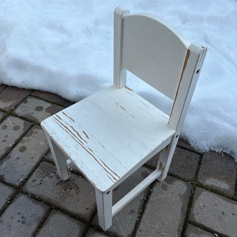 Lasten muovituoli. Säilytetty sisällä. Vain nouto.
