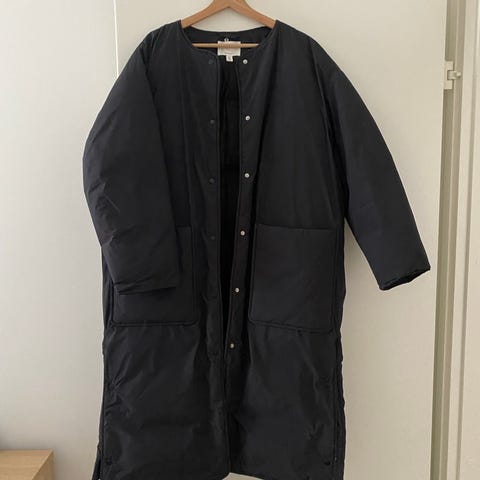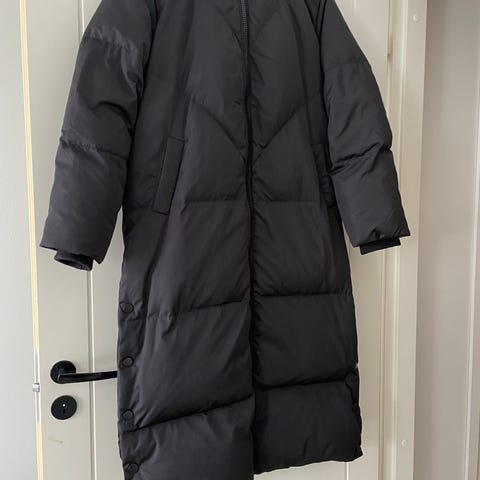 Uusi pitkä YAS untuvatakki koko M. Tummansininen. Täyte 80 % untuvaa, 20% höyhentä