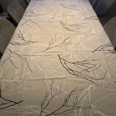 Myydään kaunis Finlayson kukkakuvioinen pöytäliina, valmistettu 100 % puuvillaa.