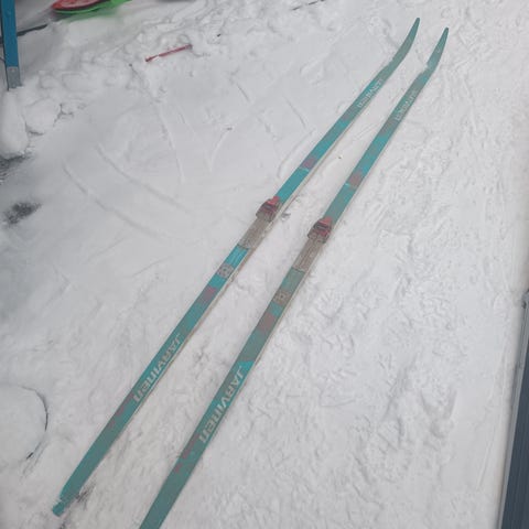 Annetaan suksisauvat. Toisen sauvan sommasta puuttuu pieni pala. Ei haittaa varmaan menoa.