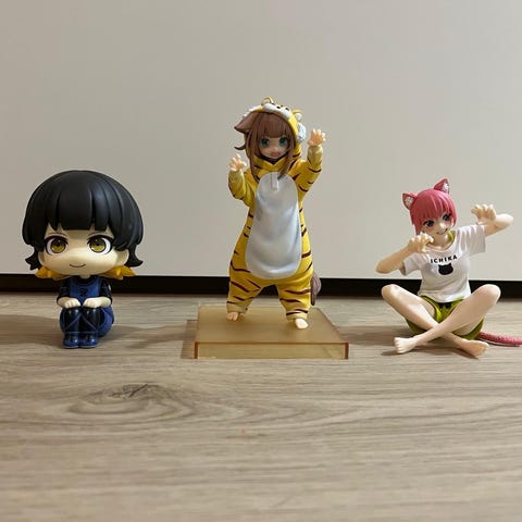 Kolme erilaista anime-figuuria