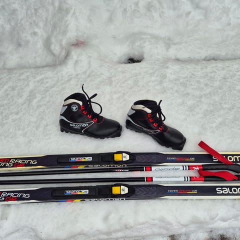 Salomon lasten sukset sauvoilla ja monot koko 38
