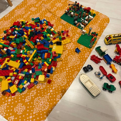 LEGO DUPLO rakennuspalikoita eläin- ja ihmisfiguureilla