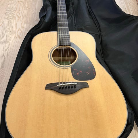 Yamaha FG720S DSR akustinen kitara, ostettu uutena v. 2017. Erittäin vähän soitettu eikä kuljeteltu mihinkään, koppa ehjä ja kunto muutamaa naarmua lukuunottamatta erinomainen. Kielet alkuperäiset.