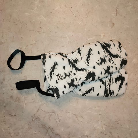 Peukalolle oma huppu ja loput 4 sormea omaan. Kämmenselässä tarrakiinnitys. On hyvät.
