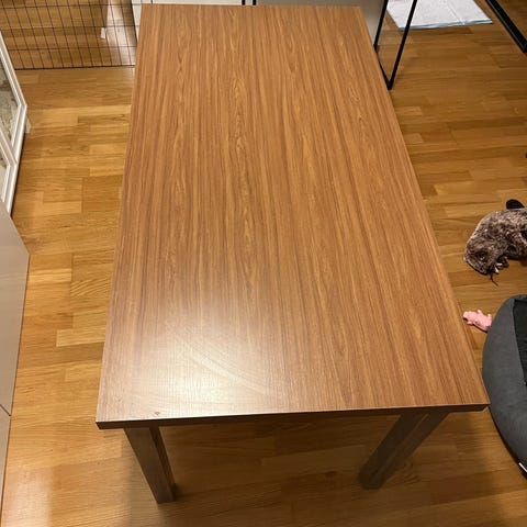 Käytössä ollut pöytä, kissa raapinut jalkaa. Vielä voisi olla toimiva. Vain nouto