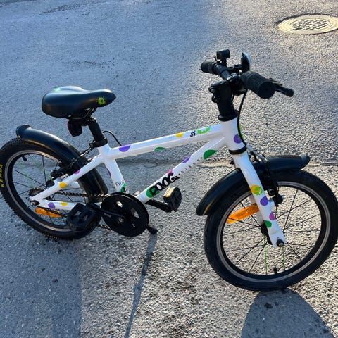 Pyörä on hyvässä kunnossa ja pidetty hyvää huolta. Frog pyörät ovat erittäin kevyitä ja näin sopii harjoitteluun todella hyvin! Ensimmäiseksi pyöräksi aivan voittamaton.