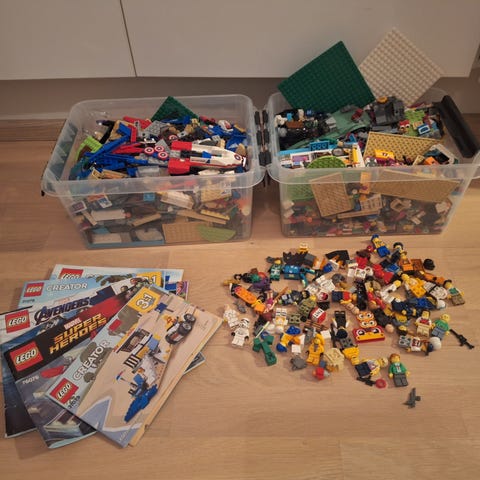 Kasa sekalaisia Legoja, 4kpl isoja lego alustoja, 1 lego säilytyslaatikko. Legot on sekaisin, muutama ohjekirja on.