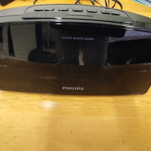 Toimiva kelloradio projektorilla eli heijastaa kellon ajan kattoon tai seinälle. Kaksi herätysaikaa.
