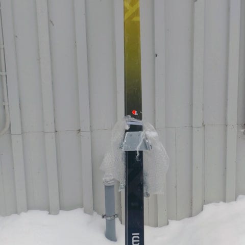 Armeijan 220 cm vaellus/metsäsukset siteillä, valkoiset sekä isosompaiset sauvat.