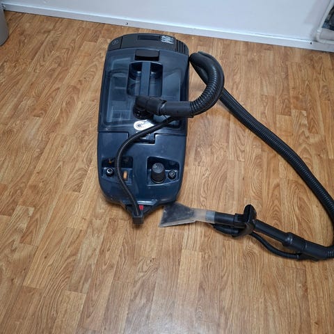 Vähällä käytöllä ollut höyry/pesu/huuhteluimuri. Letkun käyttökytkimessä vikaa. Vain nouto tai kuljetus lähelle.