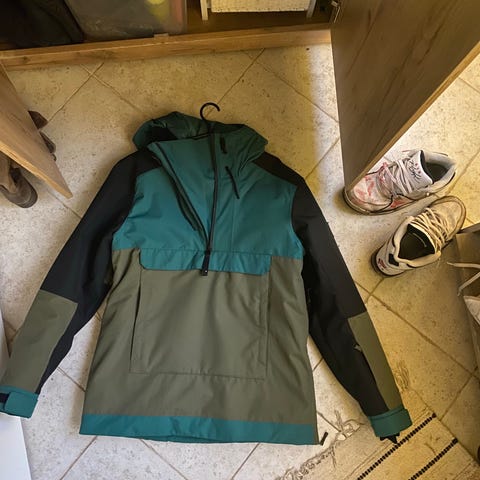 Hyväkuntoinen vihreä lasketteluanorakki.
