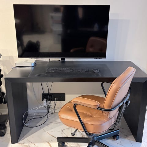 Kotikonttorin pöytänä toiminut tilava pöytä.