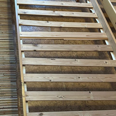 Tukeva simppeli puusänky. Purettuna.