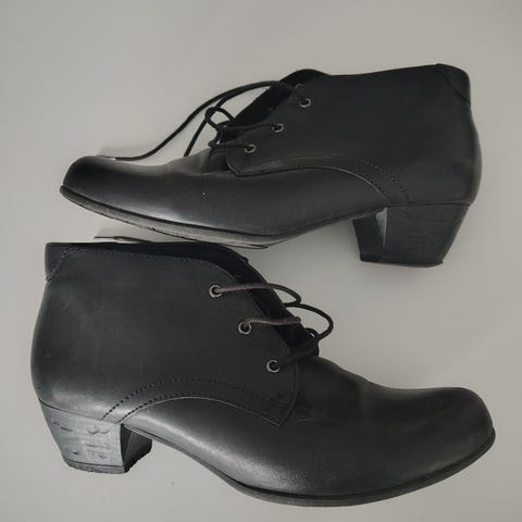 Nahkaiset mustat naisten juhlakengät. Korko 5 cm. Vanhat, mutta hyvässä kunnossa. Toisesta kengän kärjestä on hieman irronnut pohjapäällistä. Koiratalous.