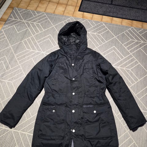 Musta Everestin toppatakki 152 cm. Muuten hyvässä kunnossa mutta toisessa hihansuussa pieni vekki, voinee korjata käsin tai vaatelaastarilla. Kissa- ja koiratalous.