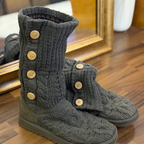 Käyttämättä jääneet UGG Classic Cardy Saappaat koko 38 harmaat. Saappaat on valmistettu neulotusta materiaalista.