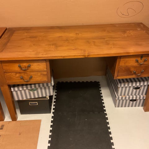 Myydään kirjoituspöytä. Muuten hyvässä kunnossa, mutta kannessa elämän jälkiä ja sen voi kunnostaa.