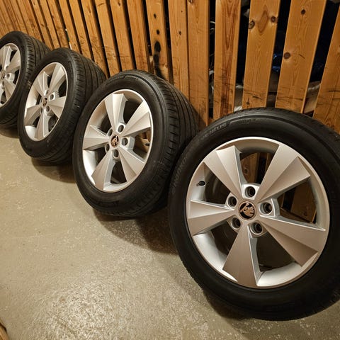 Auto meni ja rengassarja jäi. Myydään Skodan alkuperäiset uudet alumiinivanteet joille pyöräytetty ok kuntoiset käytetyt michelin kesärenkaat joissa pintaa 6mm, tasaisesti kuluneet.