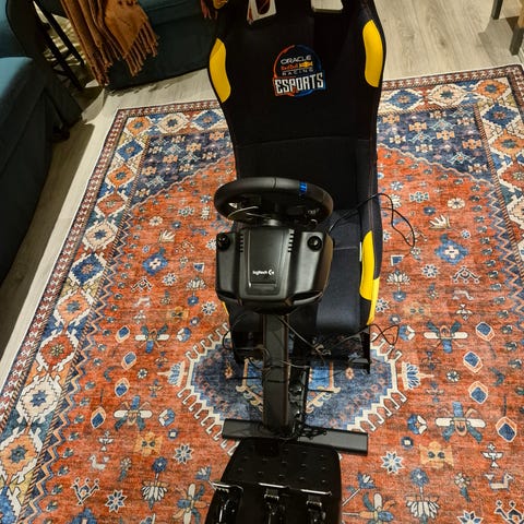 Tosikuskille mukaan myös alkuperäinen musta Playseat-matto rigin alle.