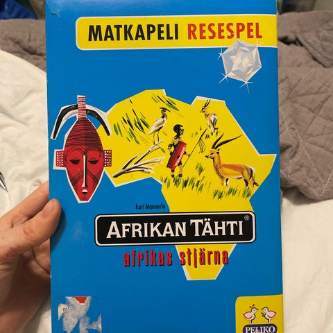 Afrikan Tähti lautapeli, jossa on Afrikka-aiheinen pelilauta ja pelinappulat. Pelissä tavoitteena on löytää Afrikan tähti ja kerätä pisteitä. Sopii useammalle pelaajalle.