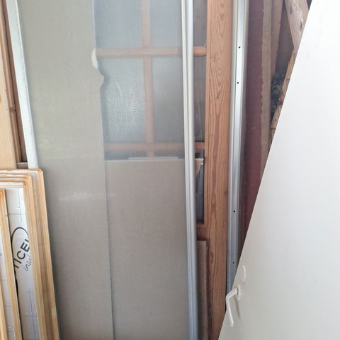 Suihkuseinä alumiinisellä kehyksellä ja himmeällä lasipinnalla.