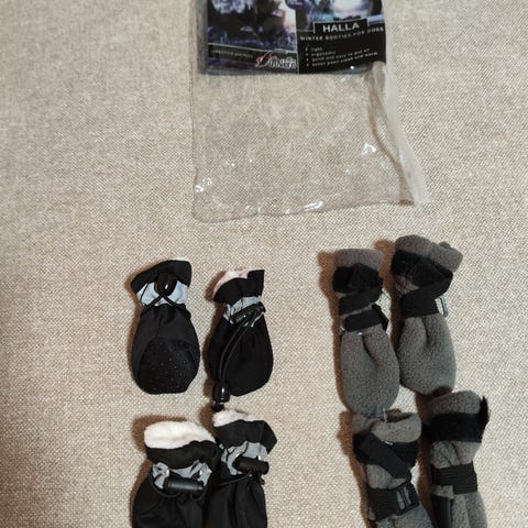 Hyväkuntoset pienen koiran töppöset. Oli käytössä chihuahualla pari kertaa. Lämmittää hyvin talvella.