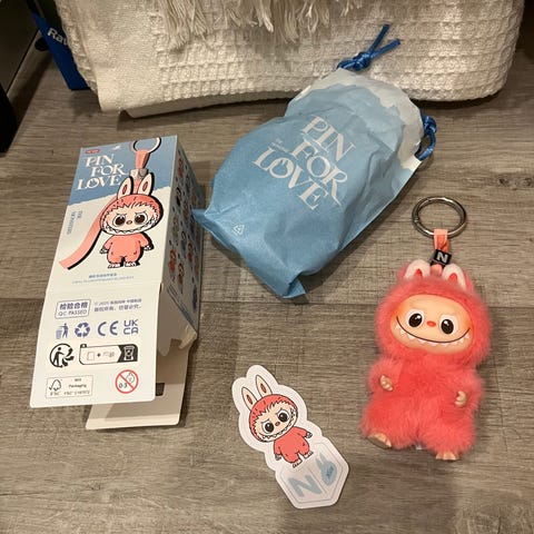 Pop mart Pin for Love avaimenperä. Uusi avatussa paketissa. Paketti avattu pohjasta joten pystyy liimaamaan uudestaan kiinni ja voi antaa vaikka lahjaksi. Aito! Pop martilta tilattu.