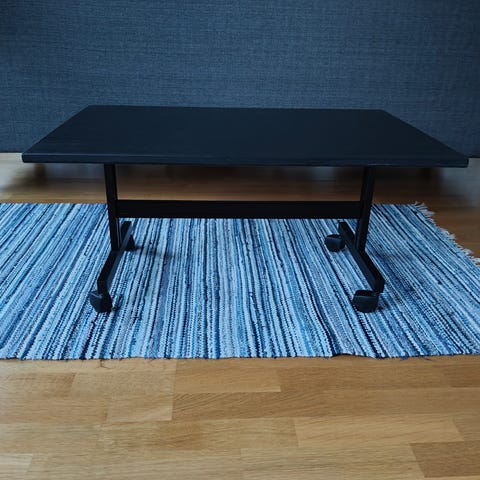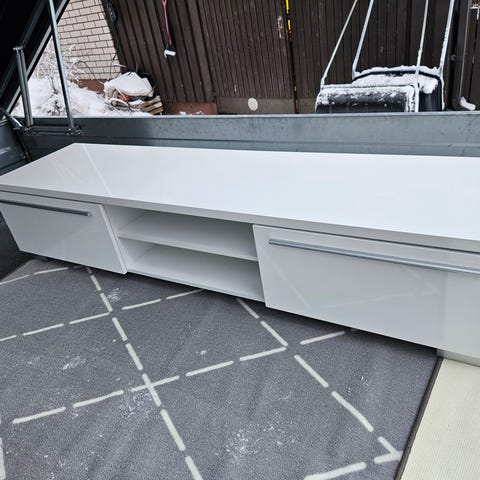 TV - taso lakkapinnoite, musta väri, metallijalat , kaksi laatikkoa, lasihylly