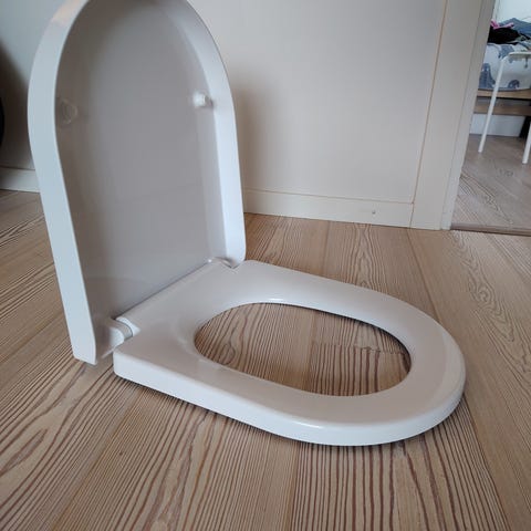 Uusi hidastuksella varustettu wc-istuimen kansi, kiinnitystappien väli noin 155mm