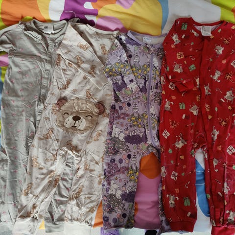 Myydään pakettina 5 kpl yöpukuja vetoketjulla. Yökkäreitä koossa 86 & 92