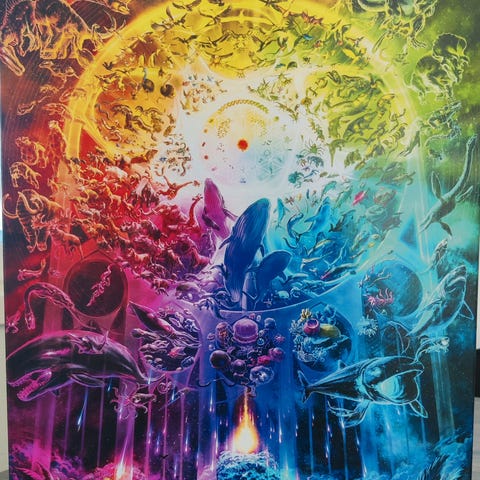 Evangelion 1000 palan palapeli. Palapelin koko on 1000 palaa, ja se sisältää kuvan Evangelion-aiheisesta taiteesta.