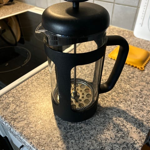 Lasinen pressopannu. Hyvin toimiva