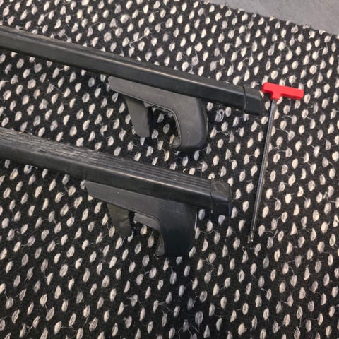 Thule kattotelineet putkien pituus 135cm. Kiinnityspisteiden väli säädettävissä n. 105-135cm välillä. Rapid system 753 jalat.
