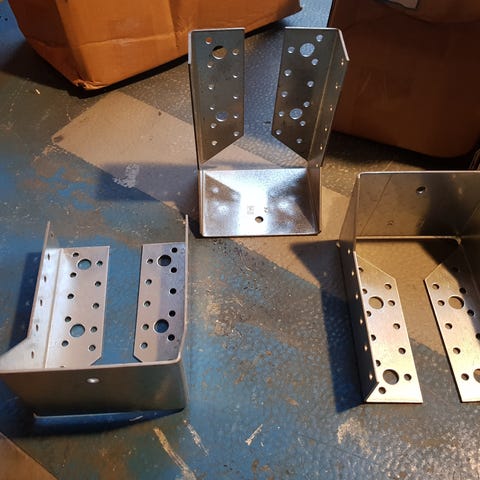 Palkkikenkiä, jotka sopivat 48-50 milliä vahvalle lankulle. Soveltuu mm. hyvin terassien runkopuiden kiinnittämiseen ymv. tarpeisiin, joilla puurunkorakenteiden osia kiinnitetään seinään ja/tai toisiinsa. Myydään yhdessä kaikki 8 kpl. Vain nouto.