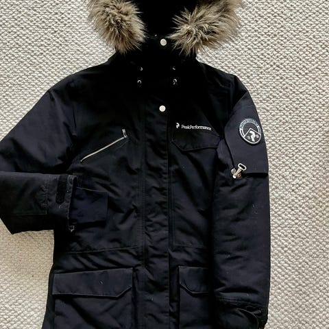 Hyväkuntoinen musta Peak Performancen Astrid parka-takki. Tuulen ja vedenpitävä.
