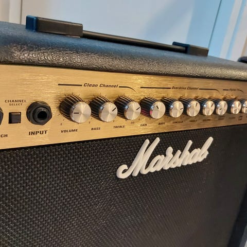 Hyväkuntoinen Marsun combo, tehoa riittävästi, 100W. 2 kpl 12" kaiutinta. Runsaat efektit, kuulokeliitäntä, efektilooppi ja line in. Mukaan ohjelmoitava 4 kytkiminen footswitsc pedaali.