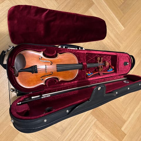 Jay Haide -merkkinen viulu, joka on kooltaan 4/4. Mukana kokonaisuudessa ovat hiilikuitujousijousi sekä kovamuovinen, pehmustettu kantokotelo ja olkatuki sekä nuottiteline. Ostettu vuonna 2021 Risto Vainio Oy:n liikkeestä Helsingissä, jolloin kokonaisuuden hinta on ollut 1470 euroa (ilman nuottitelinettä).