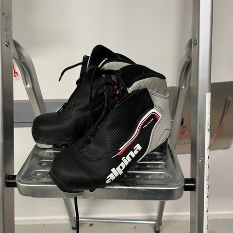 Siistit Alpina touring jr monot. Tumma väritys. NNN kiinnitys. Nimikointi pienellä monojen ulkopuolella.