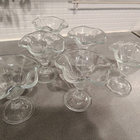 Myydään 6kpl:tta hyvän kokoisia tarjoilukulhoja. Kahdessa pieniä käytön jälkiä muut kuin uusia. Kulhot ovat Tarbeklaasin, suunnittelija Mirjam Maasikas, suunnitelu 1968. Lasi väri taittuu enemmän vaaleanpunaiseen (yksi netistä lainattu kuva jossa näkyy väri paremmin. Korkeus 6cm, leveys 12cm ja pohja 10cm.