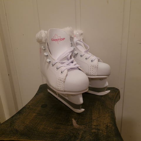 Lasten luistimet koko 25 valkoisella värillä.